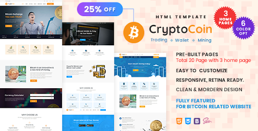 Crypto Coin is new HTML template for crypto currency exchange and trading. It also perfect template for bitcoin mining equipment websites and as well as cryptocurrency, digital currencies and bitcoin wallets websites.